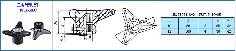 名稱(chēng):三角箭形把手 材料:酚醛模塑料(膠木、電木) 外觀(guān):光亮,外形美觀(guān),自然 標(biāo)準(zhǔn):JB/T7274.8-94