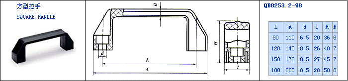 名稱:方形拉手 材料:工程塑料 外觀:亞光,外形美觀,自然 標準:QB82853.2-98