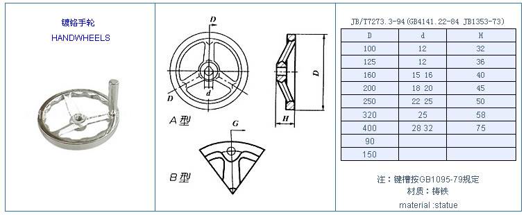 名稱(chēng):鍍鉻手輪 材料:鑄鐵 外觀:光亮,鍍鉻 標(biāo)準(zhǔn):JB/T7273.3-94